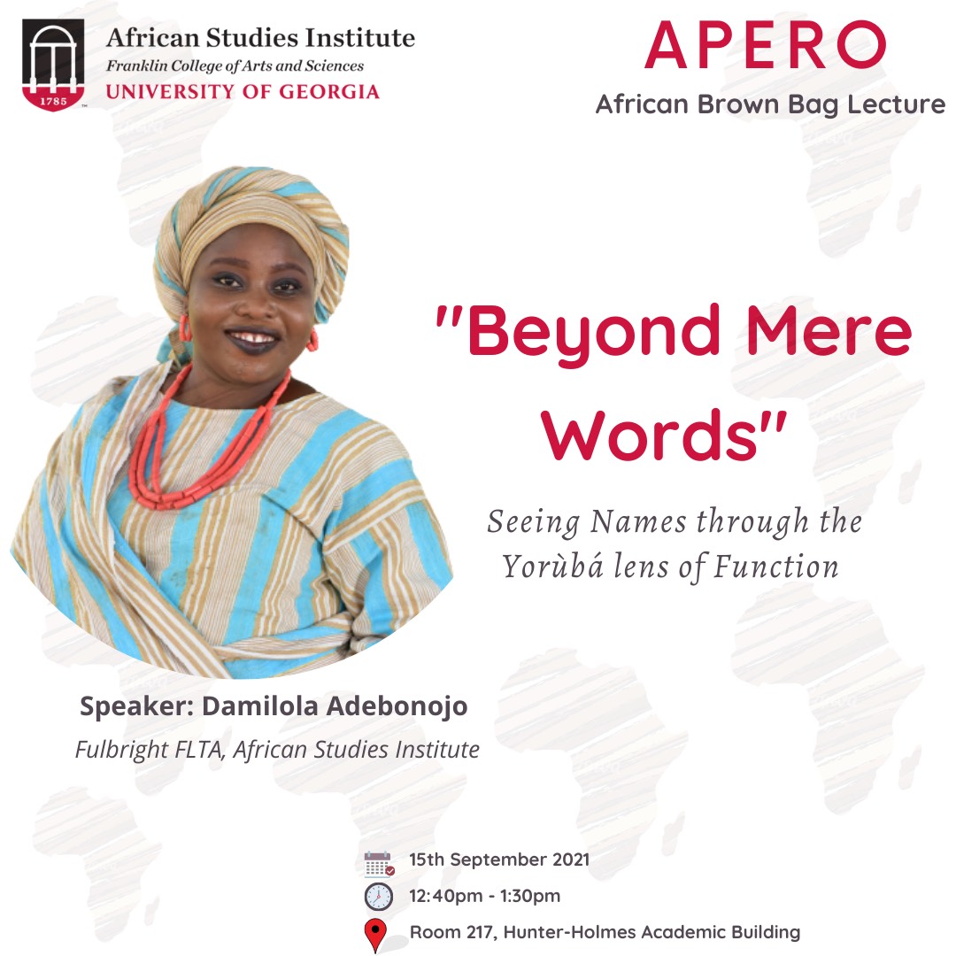 On 15th of September 2021, I had my first presentation at the University of Georgia as a Fulbright Yoruba FLTA at the bi-weekly African Brown Bag Lecture series (APERO) hosted by African Language Institute at UGA.